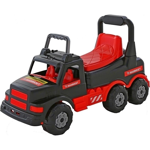 Автомобиль-каталка Mammoet оснащен тремя парами колес. Поэтому он выдерживает большие нагрузки, крутые виражи и активные детские забавы. Машина сделана из крепкого пластика, устойчивого к деформации. Такой современный материал также не боится палящего солнца и перепадов температур.