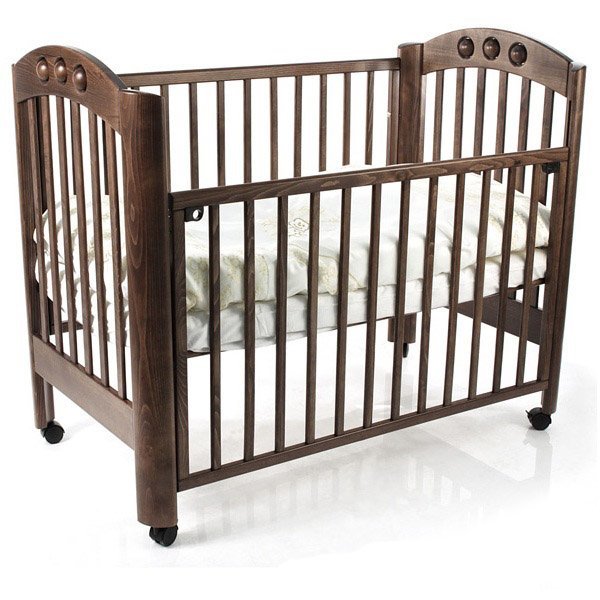 • Кроватка установлена на съемные колеса с фиксатором, диаметр которых 5см.