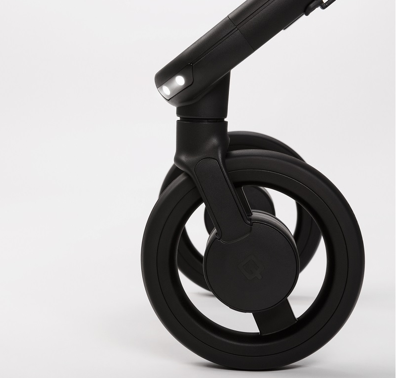 Рама модели Anex Quant сделана из легкого и прочного алюминия. Шасси компактное и в разложенном, и в сложенном виде. Складывается «книжкой». Колеса пластиковые, с амортизаторами, задние чуть больше размером. На передних имеется функция свободного вращения, на задней оси стоит двойной тормоз. Особенность коляски — LED-подсветка и светоотражатели для движения в темноте или сумерках. В комплекте есть открытая корзина для покупок и дождевик.