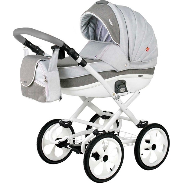 Специально для поклонников загородной жизни и прогулок на природе польские инженеры создали мощный вездеход со стильным внешним видом. Детская коляска BeBe-Mobile Ines R 3 в 1 получила усиленную алюминиевую раму на огромных пневматических колесах. Надувные шины в сочетании с пружинными амортизаторами плавно едут по ухабистым грунтовым дорожкам, старому асфальту, лужам и снегу.