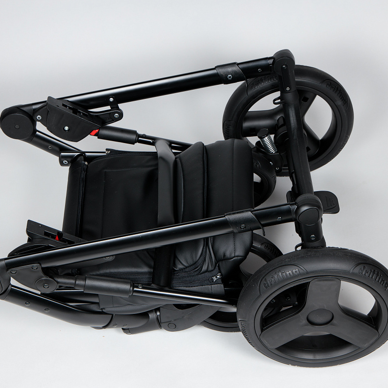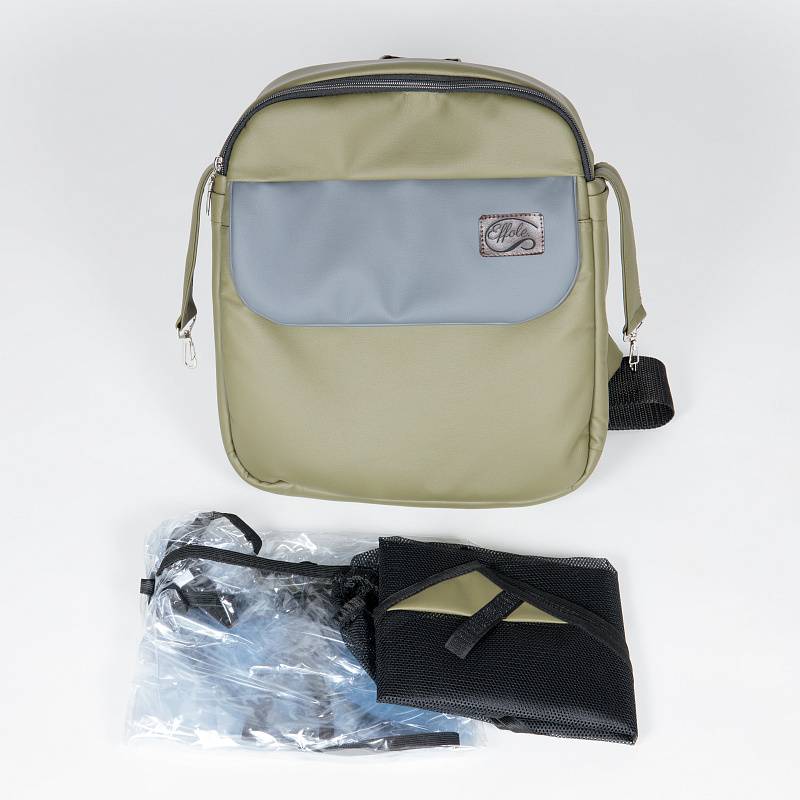 На раме установлена дополнительная амортизация с функцией регуляции по жесткости. Люльку можно снимать с рамы одной рукой, нажимая на удобные кнопки по-очереди! Передние колеса с эффектом анти-шока, поглощающему все вибрации от езды даже по неровной дороге, смягчающему удары передних колес в бордюры и препятствия. Ничто не помешает спокойному сну вашего ребенка в коляске Effole Gence. Корзина для покупок так же сделана из эко-кожи, внутренность корзины закрыта от попадания грязи на молнии.