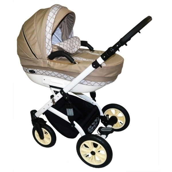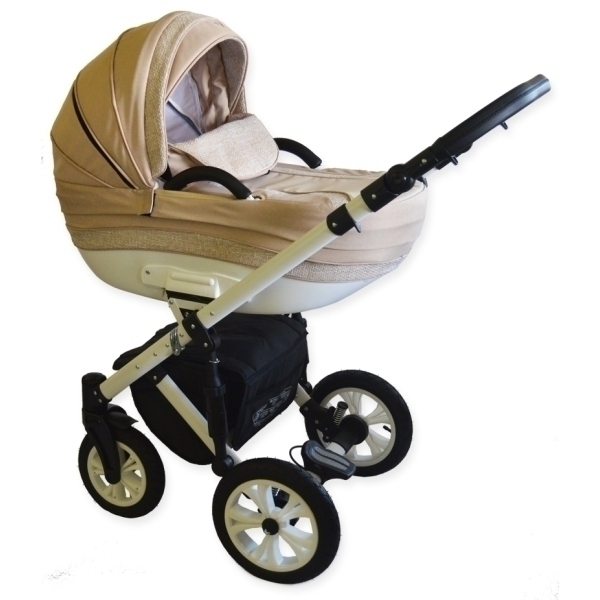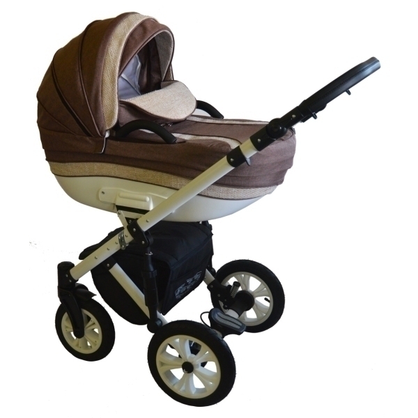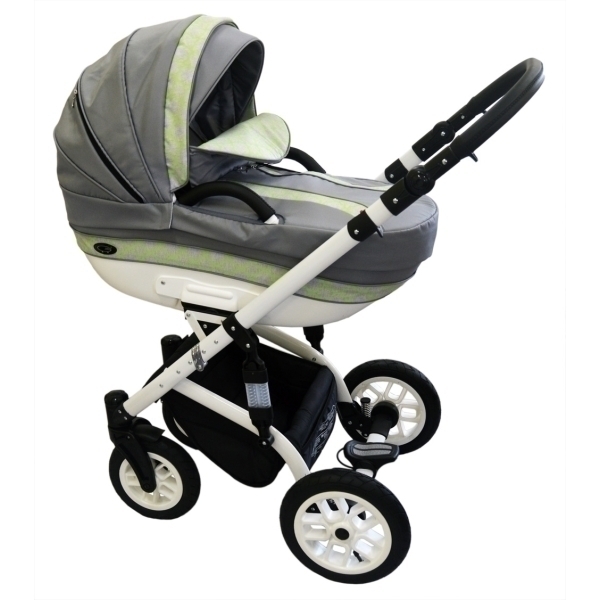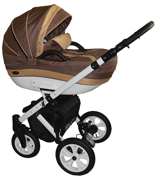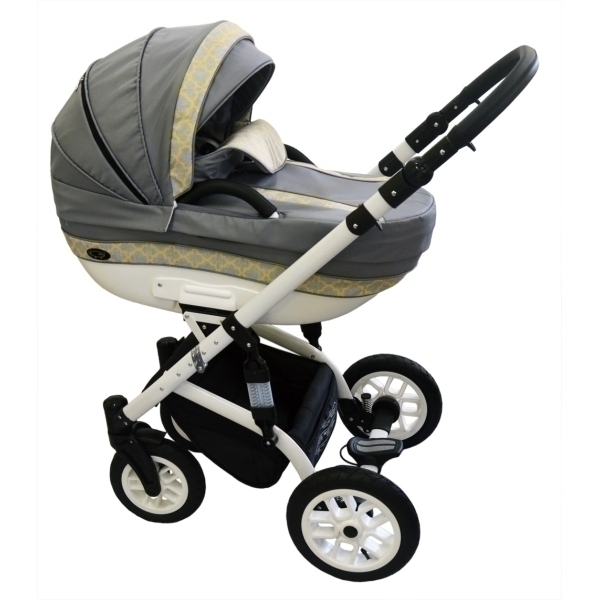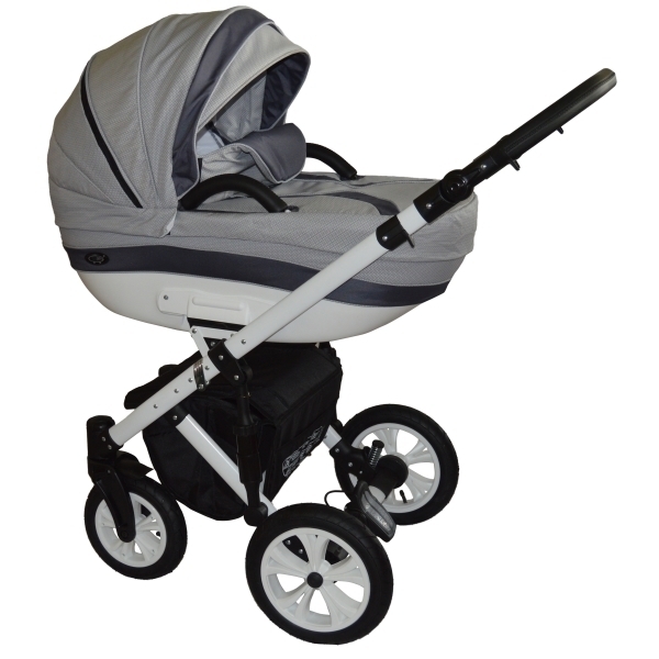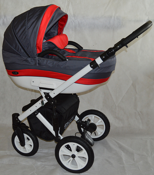Эта легкая по весу, многофункциональная и очень практичная коляска изготовлена из полимерных экологически чистых и натуральных и материалов высокого качества из Европы. Облегченное шасси из алюминия – прочное и надежное. Большие помповые колеса в сочетании с пружинной амортизацией и удобным тормозом помогут сделать каждую прогулку в удовольствие. Родительскую ручку можно отрегулировать по высоте. Благодаря тому, что она обтянута эко-кожей, она не будет затвердевать в морозы или перегреваться под ярким солнцем: рукам взрослого будет комфортно в любую погоду. Еще одно немаловажное преимущество детской коляски Gusio Briciola Carrera 3 в 1 – наличие возможности установить сменные блоки в одном из двух направлений движения.