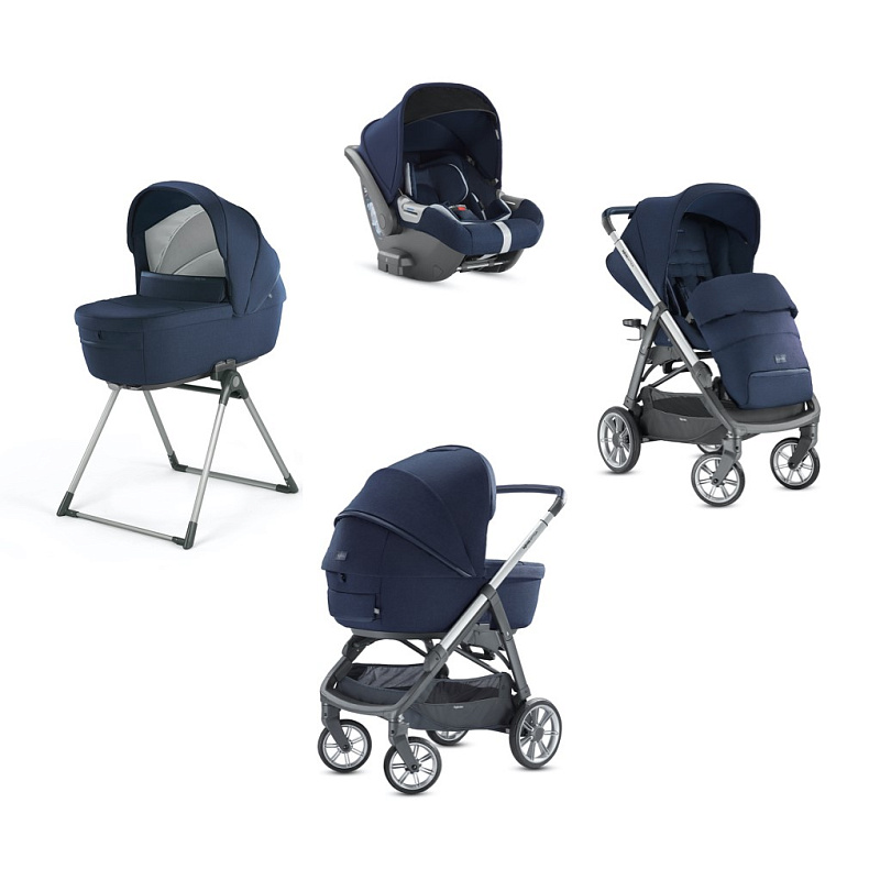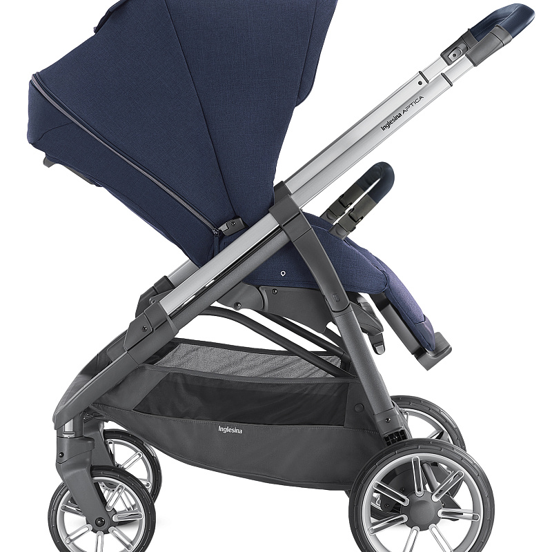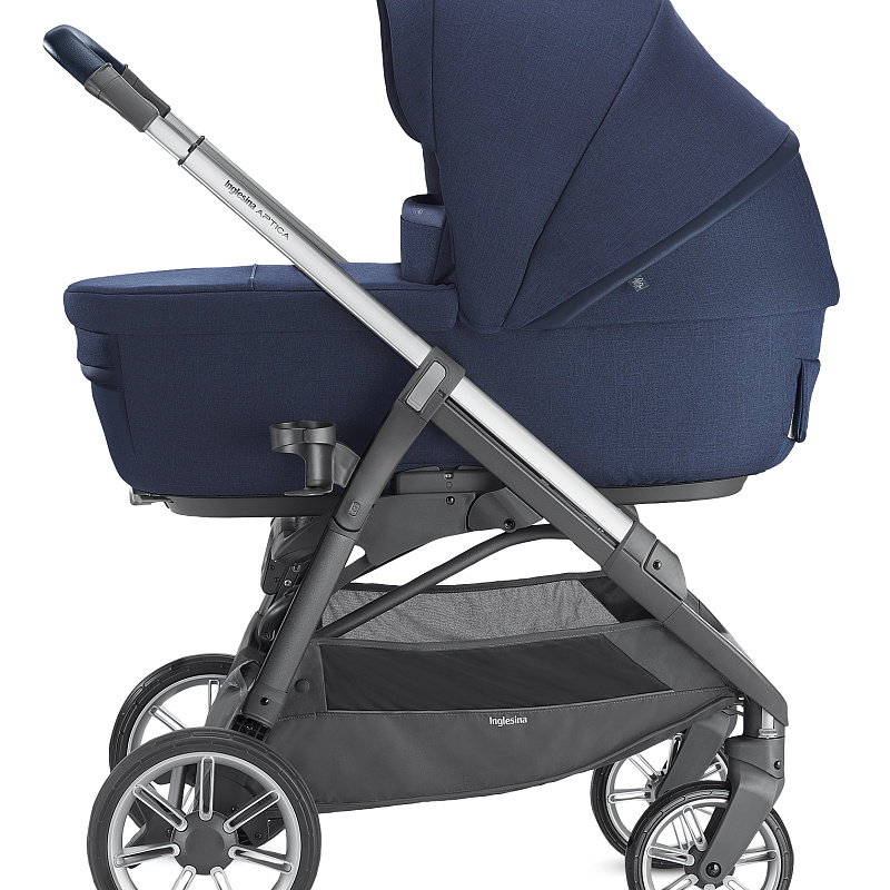 Inglesina Aptica System Quattro 4 в 1 на шасси Aptica Graphite Blue Navy – продукция знаменитого итальянского колясочного бренда. Включает три функциональных модуля, шасси с надежными ненадувными колесами, а также подставку для спального блока и автолюльки.