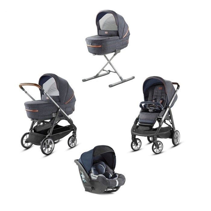 Inglesina Aptica System Quattro 4 в 1 на шасси Aptica Graphite Cuoio произведена известной итальянской маркой и состоит из трех традиционных для модульных колясок блоков, шасси с колесами и специальной подставки для люлек.