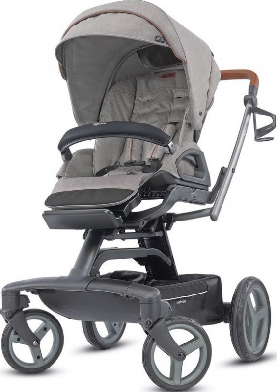 Inglesina Quad System (Инглезина Квад Систем) 2 в 1 на шасси Quad Titanium Black Cognac (Квад Титаниум Блэк Коньяк) — стильная коляска-вездеход с большим набором функций, крупными полиуретановыми колесами и подставкой для люлек Standup
