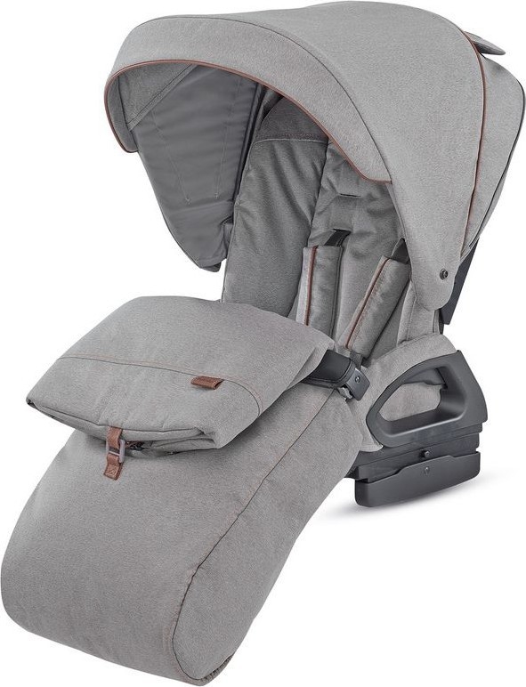 Сиденье уютное и вместительное, с хорошей вентиляцией. Спинка принимает четыре положения наклона, среди которых и полностью лежачее для сна. Блок реверсивный — принимает оба положения относительно движения. Капюшон можно «раздвигать» с помощью дополнительного сегмента, защищая малыша от ультрафиолета. Летом не будет лишним сетчатое окошко для вентиляции. Зимой пригодитс теплая накидка на ножки. Для защиты ребенка предусмотрены 5-точечные ремни безопасности и защитный бампер. Вся обивка блока съемная, ее можно стирать в том же «деликатном режиме».