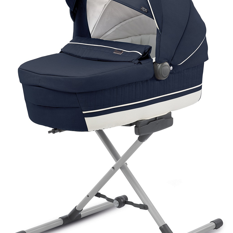 Подставка для люлек алюминиевая и подходит для спального блока и автолюльки. Подставка компактно складывается. Чтобы будучи разложенной она скользила по полу, в ней есть антискользящие пластиковые накладки. Подставка трансформирует люльку в колыбель для сна.