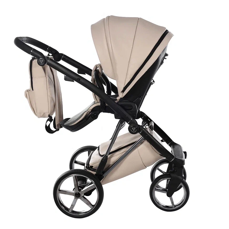 Управлять коляской можно с помощью регулируемой по высоте ручки с покрытием из экокожи. Рама складывается «книжкой». Колеса резиновые, произведены из практичной вспененной резины, которую не нужно подкачивать и которая не пробивается. Спереди колеса обладают функцией свободного вращения. Шасси оснащено пружинными амортизаторами. Тормоз удобный, ножной. Есть закрытая текстильная сумка для вещей.