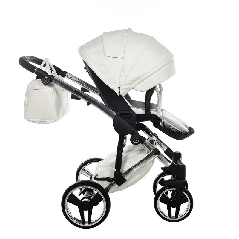 Junama Diamond Individual V2 3 в 1 на серебряной раме снабжена подстаканником, дождевиком, москитной сеткой, сумкой для мамы, чехлом на ножки.