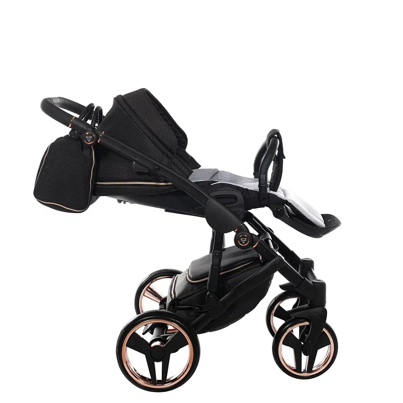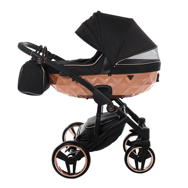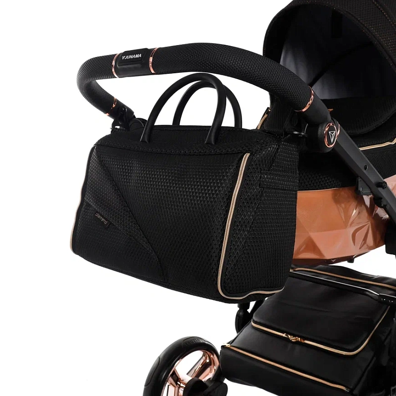 Junama Diamond Mirror Satin V2 3 в 1 получила обновление в 2022 году. Коляска стала более функциональной, европейские дизайнеры доработали внешний вид. В Version 2 съем люльки осуществляется одной кнопкой. Алмазная форма спального блока осталась прежней. В коляске для внешнего покрытия применяется премиальная ткань с пропиткой, которая препятствует проникновению внутрь влаги, не продувается ветром и не боится активного солнца. Сочетание уникального дизайна с атласной тканью создает великолепную комбинацию, которая притягивает взгляды прохожих.