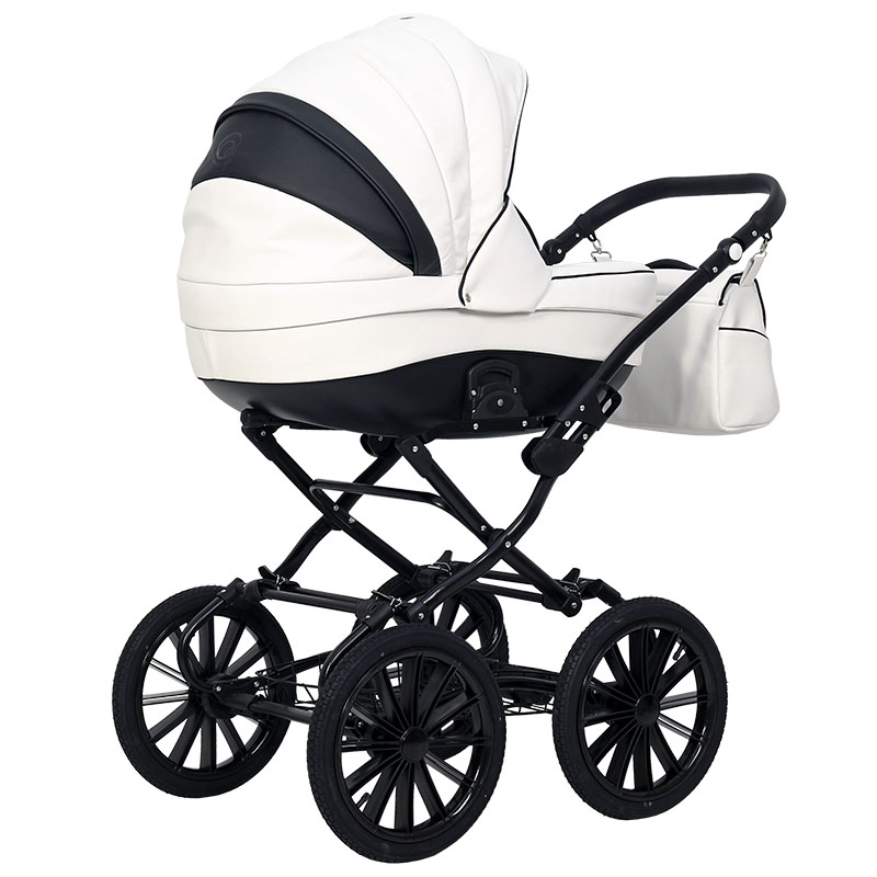 На коляске Fabio Lux Classic 3 в 1 установлена классическая рама из алюминия. Шасси складывается «книжкой». Колеса крупные, надувные, оснащены элегантными спицами. Корзина по примеру прочих классических моделей выполнена из металла в виде решетки. Родительская ручка регулируется по высоте при помощи функциональных кнопок. Тормоз педальный, ножной. Амортизационная система ременная.