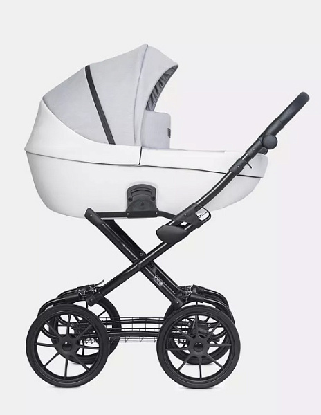 Родителей в этой модели порадуют стильные вставки из искусственной кожи. Ткань чехлов не промокает и не продувается благодаря специальной пропитке. Блоки устанавливаются и снимаются одним движением с помощью удобного и простого механизма One Click. В капюшонах обоих модулей есть вентиляционные секции на молниях. Также в капюшонах складные козырьки. Ручка, которой управляется коляска, регулируемая. Коляска комплектуется сумкой-рюкзаком, дождевиком, москитной сеткой.