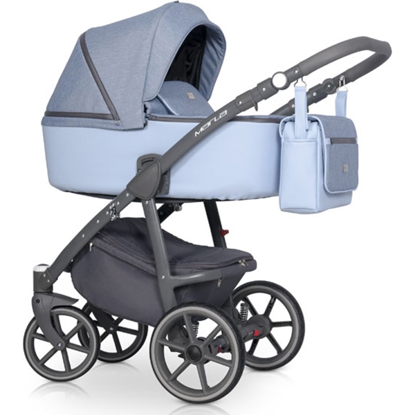 Эта модель удачно объединила в себе стильный дизайн и разнообразные функциональные возможности. Трендовая прямоугольная люлька, оригинальная комбинация из меланжевой ткани и эко-кожи, красивые крупные молнии и интересные пастельные оттенки — все это детская коляска Riko Marla 3 в 1. Спальная корзина и «прогулка» легко переустанавливаются на раму, замок крепления Click And Gо позволяет маме делать это за несколько секунд и без посторонней помощи. Приятный бонус — возможность устанавливать сменные блоки в любом направлении относительно дороги в зависимости от предпочтений малыша или погоды.