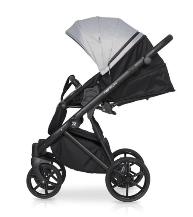 Рама алюминиевая, легкая, но прочная. Шасси с двойной амортизацией. Колеса полиуретановые, с подшипниками. Обладают функцией движения прямо либо поворота на 360 градусов. Тормозная система (центральный стояночный тормоз) установлена на задней оси. Есть система «антишок». Внизу оборудована вместительная корзина для покупок. В комплекте идет стильная сумка, которая размещается возле родительской ручки, два дождевика, антимоскитная сетка.