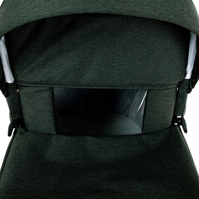 Рама коляски оснащена системой крепления 1 Click с двойной защёлкой, которая минимизирует люфт люльки и прогулочного блока, обеспечивая устойчивость. Капюшон люльки с интегрированной ручкой для переноски отцентрован, что позволяет нести люльку ровно, без перекосов. В нем есть москитная сетка, скрытая отворотом, и два положения регулировки через кнопочный механизм. Накидка на люльку с морозостойким силиконовым окошком на кнопках и магнитах плотно прилегает, защищая от непогоды и упрощая доступ к ребёнку.