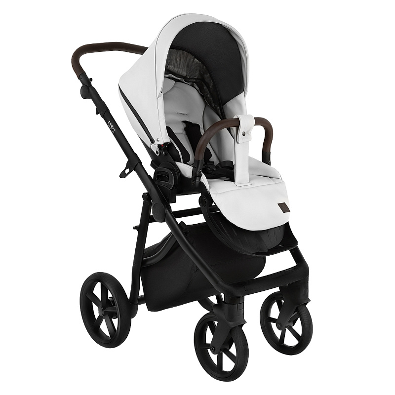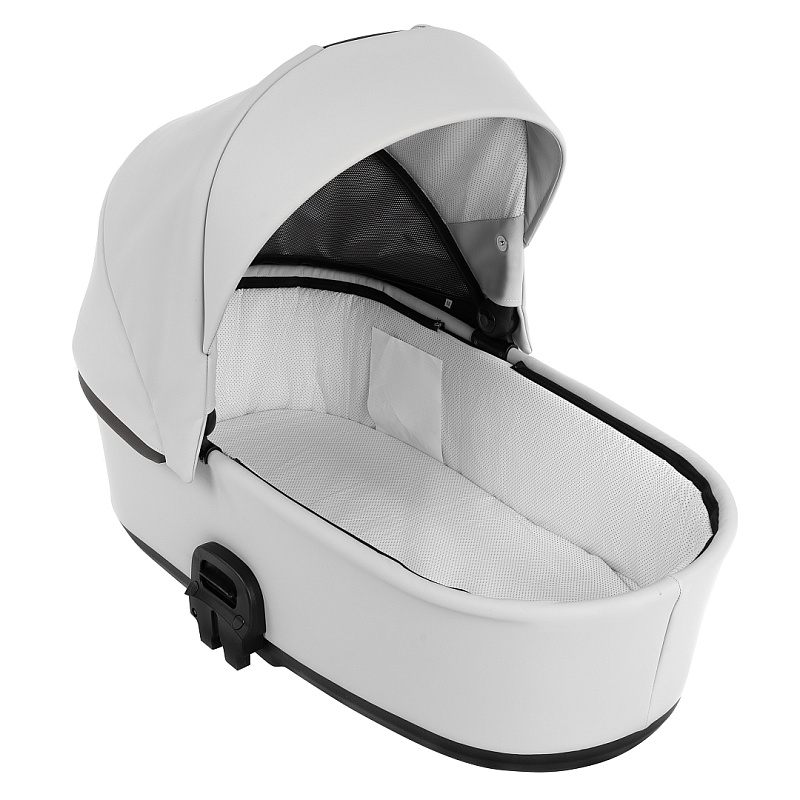 Рама коляски оснащена системой крепления 1 Click с двойной защёлкой, минимизирующей люфт для большей устойчивости. Капюшон люльки с интегрированной ручкой позволяет переносить её ровно, без перекосов, а москитная сетка, скрытая отворотом, и двухпозиционная регулировка добавляют удобства. Накидка на люльку с морозостойким силиконовым окошком на кнопках и магнитах плотно прилегает, защищая от ветра и дождя, и легко открывается для доступа к ребенку. Экокожа придает коляске элегантный вид и упрощает уход, делая её стильным выбором для современных родителей.