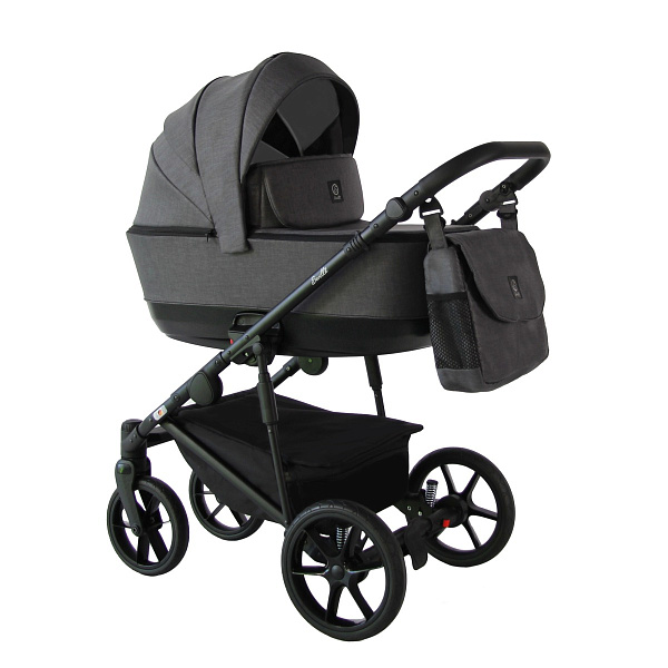 Коляска поставляется с практичными аксессуарами: вместительной сумкой для мамы, закрытой корзиной из экокожи для покупок, съемным держателем для бутылочек, плотным дождевиком и москитной сеткой. Эти элементы делают прогулки комфортными и удобными в любых условиях, а корзина легко моется, защищая вещи от пыли и грязи.