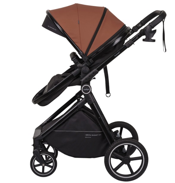 Прогулочный блок реверсивный, позволяя малышу смотреть на родителей или окружающий мир.Коляска Indigo TARGET выделяется продуманными деталями: