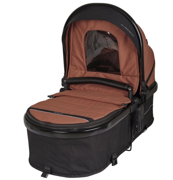 Капюшон регулируется в шести положениях, дополнен москитной сеткой и расширяемой секцией для защиты от солнца или ветра. Накидка на ножки с ветрозащитным клапаном и силиконовым окошком обеспечивает тепло и уют, а ее глубину можно увеличить.