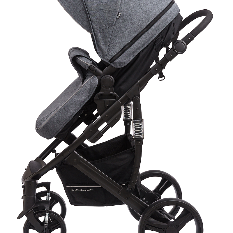 Подножка прогулочного блока регулируется по высоте. В прогулочном блоке также имеются 5-точечные защитные ремни.