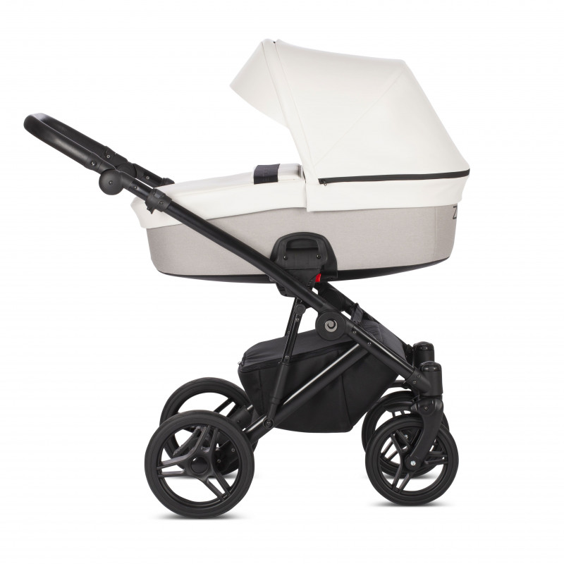 Мягкий и плавный ход коляске Zille гарантирует система амортизации, состоящая из пружин по бокам рамы и амортизатора закрытого типа на задней оси. Ребенок не почувствует ухабов даже при прогулке по брусчатке или большому бездорожью. Режим смены блоков очень простой, справится любая мама. Колеса резиновые, с гелевым наполнителем, передние поворачиваются либо фиксируются. Родительская ручка регулируемая, в кожаной оплетке. Мам порадует вместительная багажная корзина.