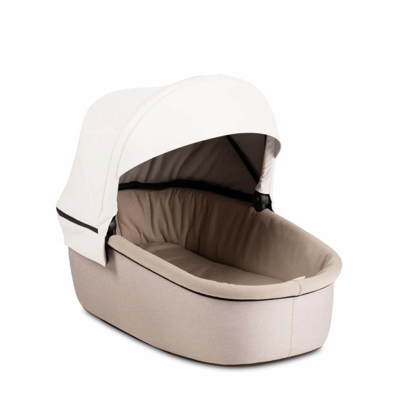 Прогулочный модуль по традиции реверсивный, устанавливается в любом направлении. Для комфортных зимних прогулок предусмотрена теплая накидка на ножки с отворотом, который расстегивается и фиксируется. Текстиль на накидке дорогой: применяется мембранная ткань. Это непродуваемый и непромокаемый материал, который при этом умеет «дышать». Если ребенка надо уложить спать во время прогулки, спинка откидывается в горизонтальное положение, создавая полноценное место для сна. Глубокий капюшон с двумя дополнительными сегментами позволяет защитить малыша от солнца и ветра. По стандарту блок оснащен 5-точечными ремнями безопасности и надежным бампером-поручнем.