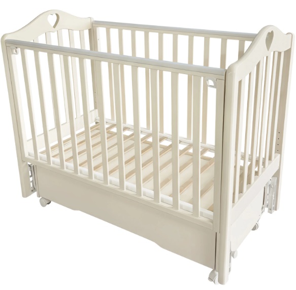 Качание в Дарина‑2 реализовано через универсальный маятниковый механизм, который поддерживает и продольное, и поперечное движение, поэтому родители могут выбрать тот вариант укачивания, к которому ребенок легче привыкает. Дополнительно на основании установлены колеса, что позволяет при необходимости без усилий передвинуть кроватку в другое место, а при фиксации кровать остается устойчивой и не смещается сама по себе.