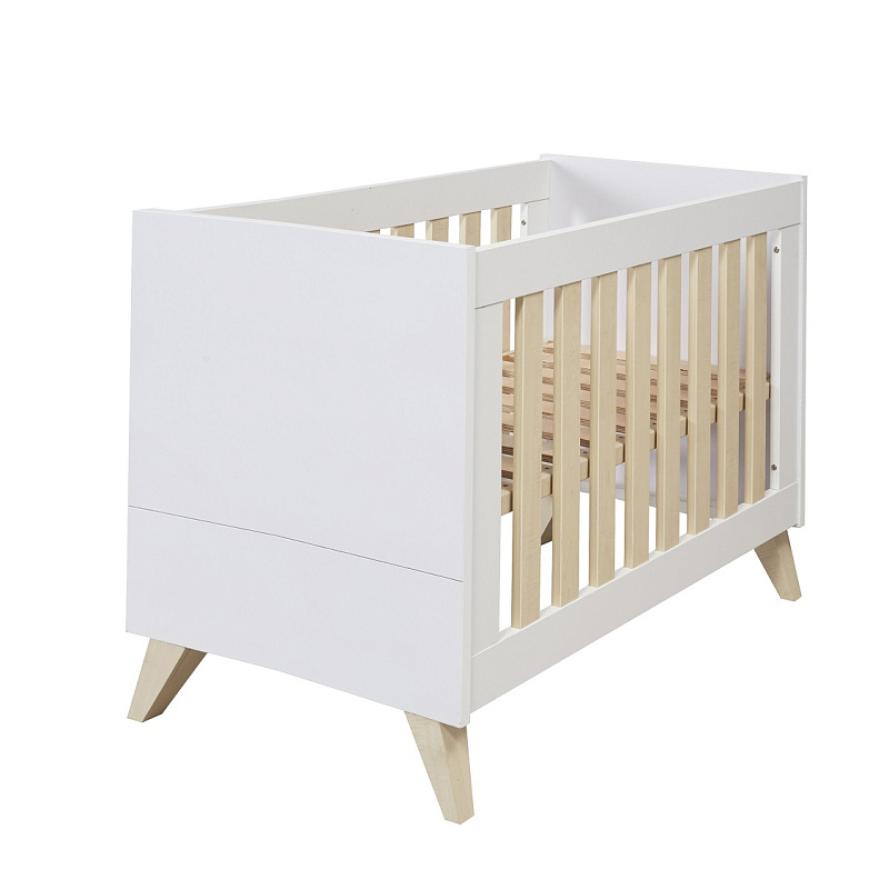 IKid Lazio – кроватка, сделанная в современном лофтовом дизайне. Каркас кровати белый, дополняется ламелями натуральных расцветок.