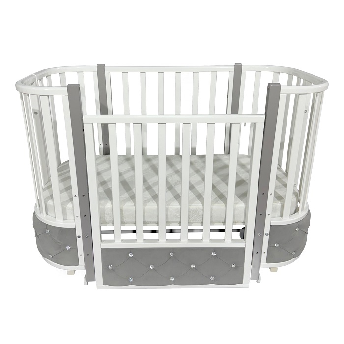 Модель Estelle Elegance 4 Велюр - это кроватка овальной формы, оснащенная одновременно поперечным маятником и колесами. Предназначена мебель для детей с 0 до 3-4 лет (максимальная нагрузка на кровать составляет 30 кг). Материал изготовления - массив березы, внизу кроватка декорирована серым велюром.