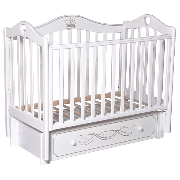 Детская кроватка Кедр Karolina (Каролина) 8 с фигурной задней стенкой, универсальным маятником и вместительным ящиком для белья