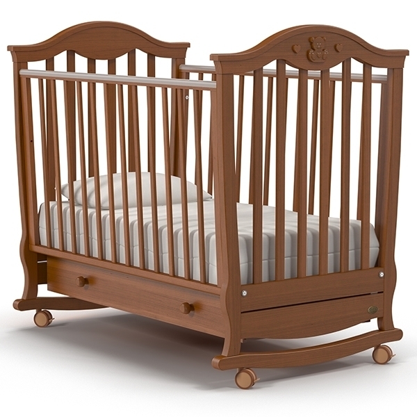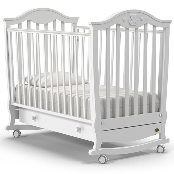 Мультифункциональная кроватка дарит комфорт малышу и удобство использования родителям. Ортопедическую основу необходимо зафиксировать в верхнем положении, когда малыш еще совсем маленький. Таким образом, маме не придется наклоняться слишком низко и каждый раз напрягать спину. Когда основание переставляется на нижний уровень, то удобно параллельно использовать регулируемый борт: при опущенной решетке маме удобно укладывать кроху спать или вынимать его из кроватки. Полозья плавно раскачивают ложе, помогают карапузу быстрее уснуть.