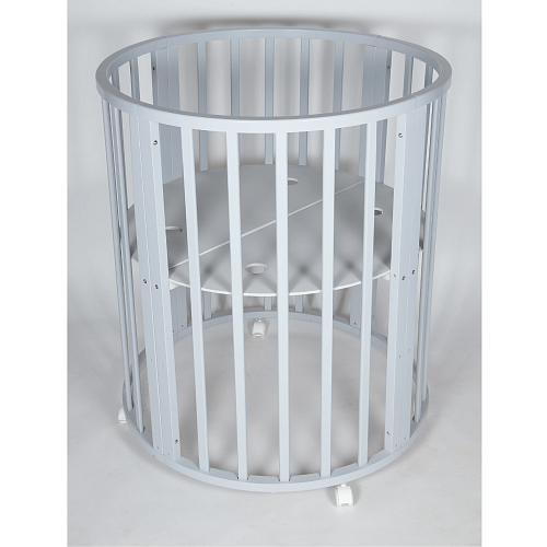 Жесткое дно имеет ортопедический эффект и вентиляционные отверстия. У спального места три уровня высоты. В комплекте идут колесики со стопорами. Также кровать можно использовать как диванчик, круглый и овальный манеж.