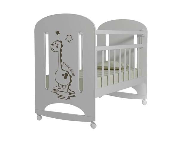 Детская кроватка Dino – это стильная, современная, качественная мебель производства РФ. Выполнена из массива березы и ламинированной ДСП. Предназначена для ребенка с 0 до 4 лет. Оснащена колесиками и простым механизмом укачивания. Как качалку кроватку применяют, когда ребенок маленький. Затем мебель устанавливают на колеса. На левую боковую спинку кроватки нанесен рисунок жирафа. Нейтральные расцветки подойдет под любой интерьер.