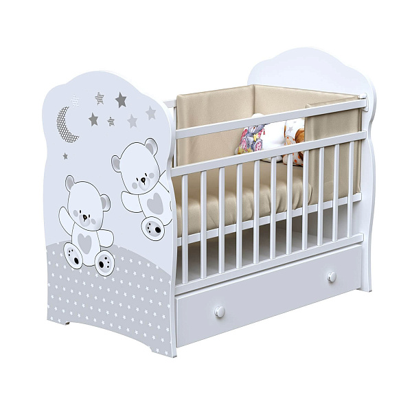 ВДК Funny Bears (Фанни берс) маятник/ящик — стильная и функциональная десткая кроватка с поперечным маятником и большим выдвижным ящиком