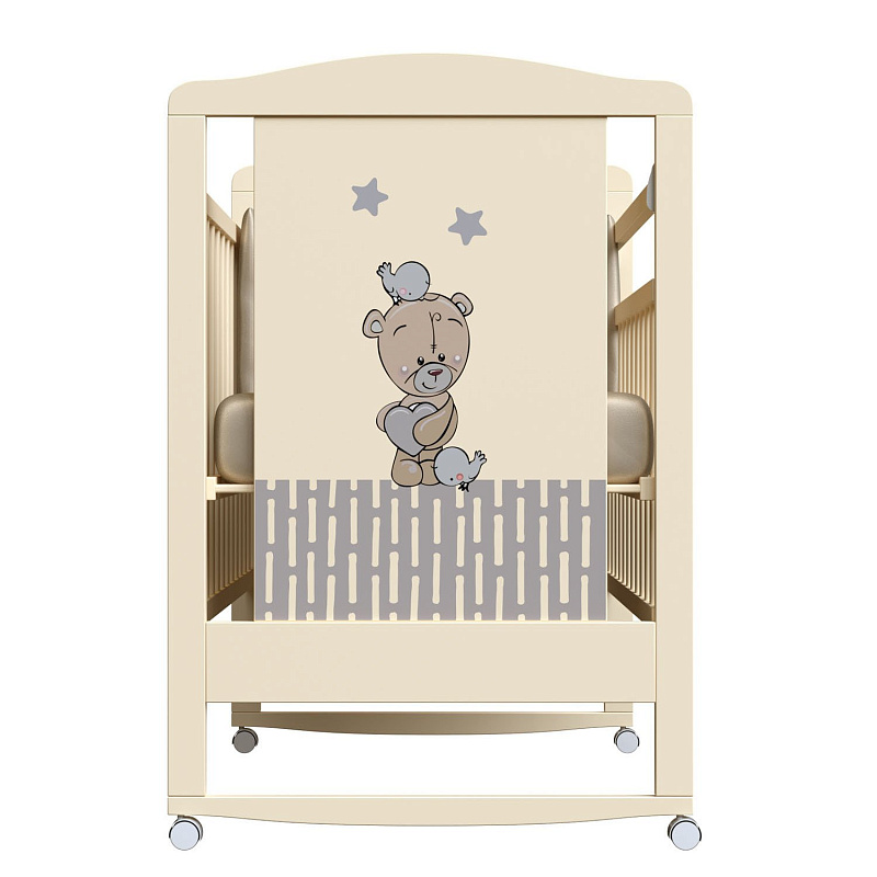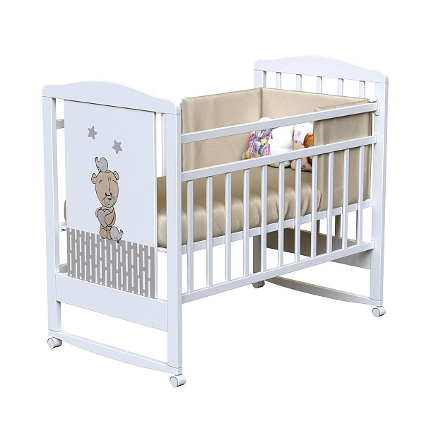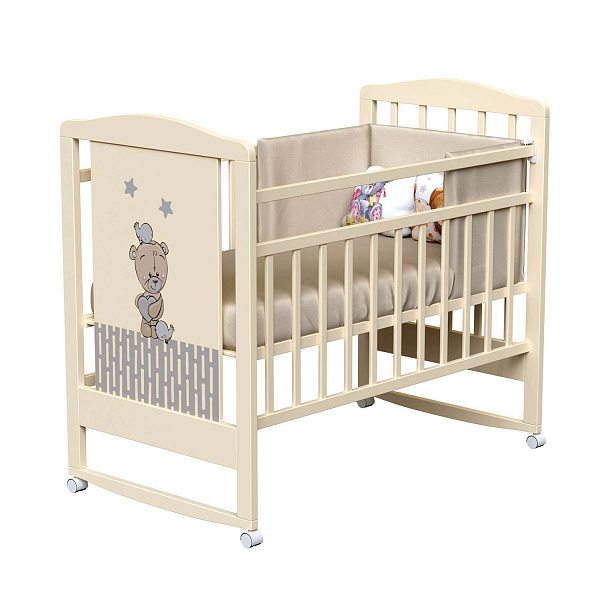 ВДК Love Me (Лав Ми) — детская кроватка на колесиках с качалкой и симпатичным изображением на боковой части