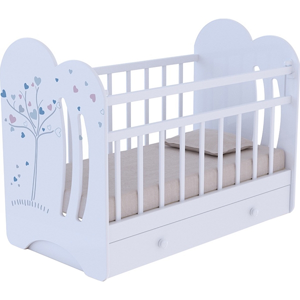 Главное украшение этой модели — эффектные боковые панели, декорированные изображениями волшебных деревьев. Ее конструкция сделана из массива березы и покрыта безопасными лакокрасочными средствами.