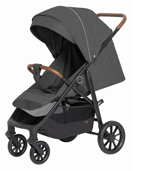 В капюшоне есть дополнительная секция, которая укрывает ребенка во время сна или плохой погоды. Внизу оборудована удобная багажная корзина. Есть вентиляционные отверстия для комфортных прогулок летом, а также окошко для наблюдения. У изголовья имеется специальный ограничитель. Бампер съемный, может вращаться в отстегнутом виде в любую сторону.