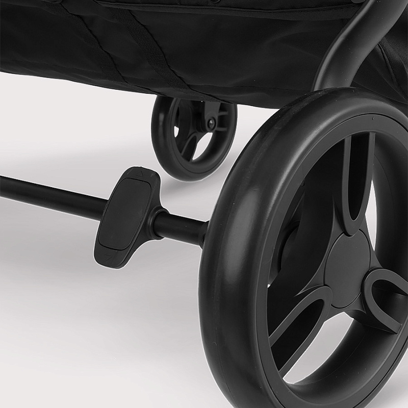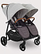 Родители оценят большой функционал этой коляски. Сложение происходит при помощи одной руки. Рама прочная, выполнена не из алюминия, как большинство современных колясок, а из стали. Колеса полиуретановые, передние имеют меньший диаметр и способны свободно вращаться. Тормозная система — ножная, применяется «тормоз-качелька». Благодаря смотровым окошкам в капюшонах родители всегда в курсе, что делают дети. Бамперы в каждой части съемные. К большой багажной корзине можно подобраться как спереди, так и сзади. Коляска выполнена в трех трендовых цветах сезона.