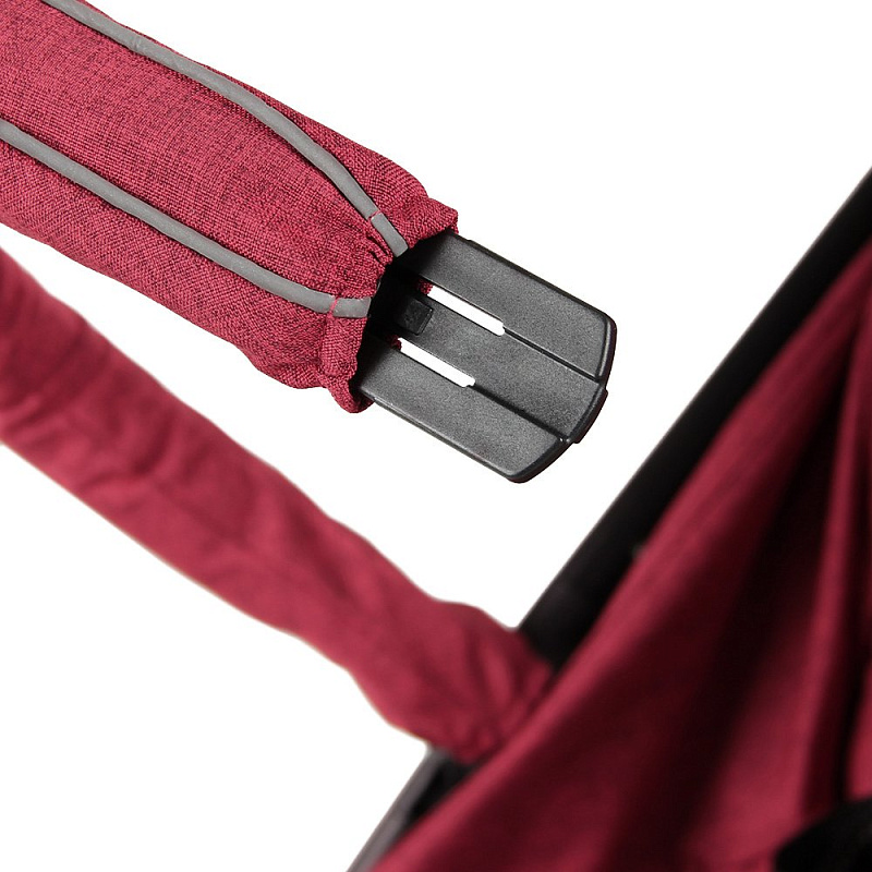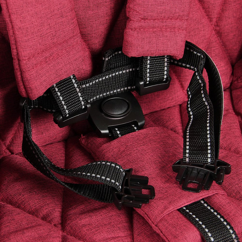 Накидка на ножки застегивается на молнию. Защитный поручень съемный, есть 5-точечные ремни безопасности для защиты маленького пассажира от выпадения. Коляска дополнена вместительной сумкой для покупок. В сложенном виде модель хорошо фиксируется. Тормозная система центральная.