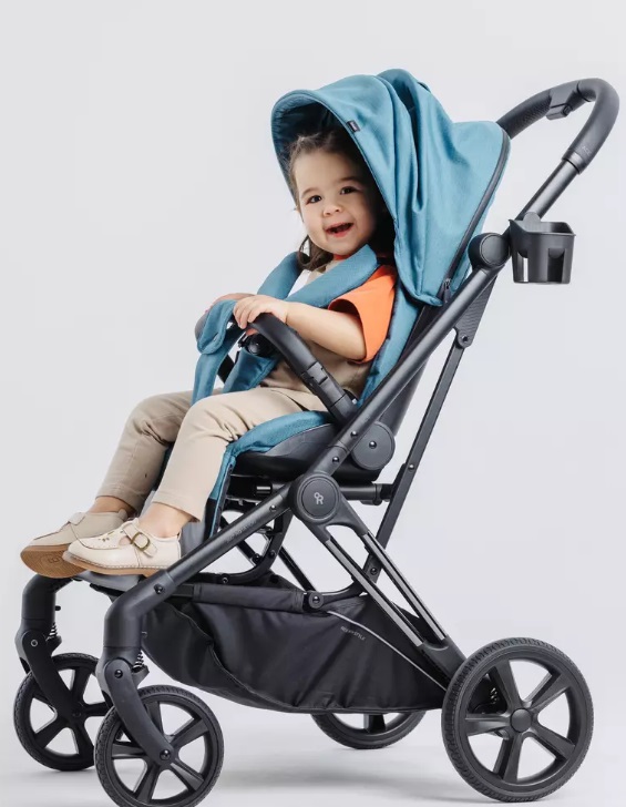 Подножка выполнена из практичной экокожи. Также из этого материала сделан хват ручки. Передние плавающие колеса могут фиксироваться для движения строго прямо. В капюшоне оборудовано смотровое окошко. В комплект входит подстаканник.