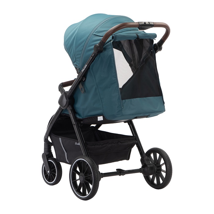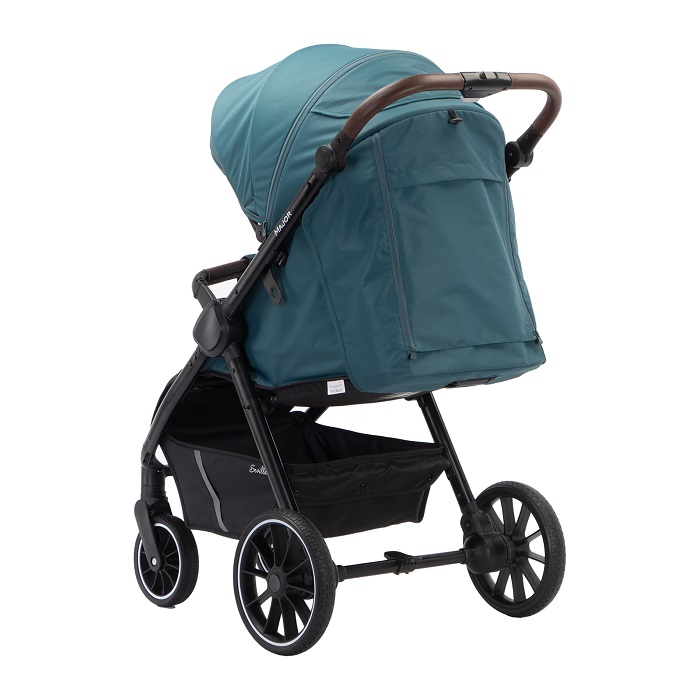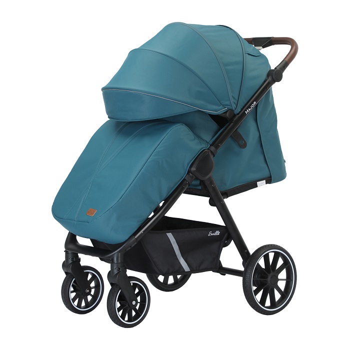 Major – коляска, с которой можно гулять в любое время года. Максимальная нагрузка в 22 кг позволяет использовать ее до тех пор, пока ребенку не исполнится 4 года. Рама усиленная, алюминиевая. Колеса выполнены из вспененной резины, не прокалываются и не требуют специального ухода, а также подкачки. У передних поворотных колес – дополнительная система амортизации, которая сглаживает удары о препятствия. Поскольку колеса крупные, коляски хорошо справляется с бездорожьем.