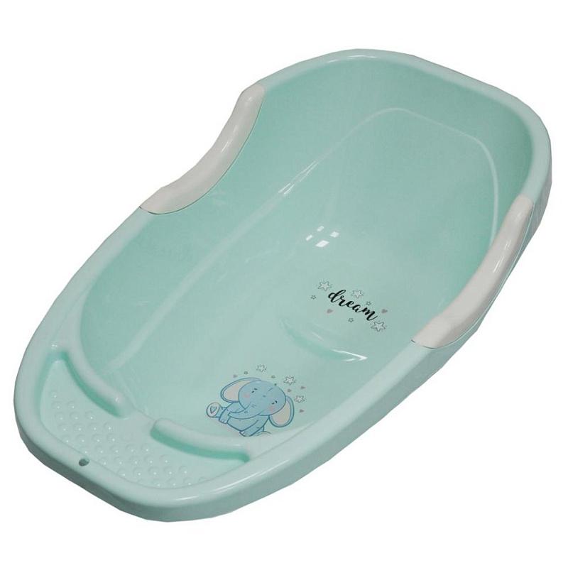 Конструкция предусматривает удобные выемки по бокам и специальный отсек в задней части для ванных принадлежностей. Есть аппликация на дне, чтобы купание превратилось в увлекательную игру.