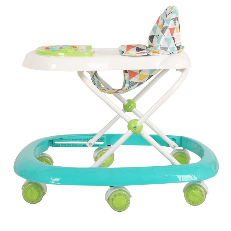 Для развлечения малыша предусмотрена музыкальная панель со звуковыми эффектами, которая стимулирует интерес и помогает сделать процесс обучения ходьбе увлекательным. Ходунки легко складываются до компактных размеров, что удобно для хранения или транспортировки. Изготовленные из пластика, текстиля и металла, они сочетают прочность и легкость.