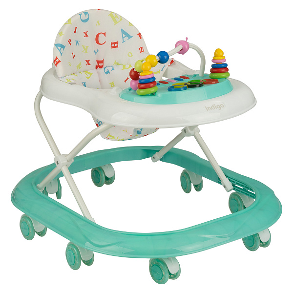 Indigo ABC C (Индиго Эй Би Си Си) – яркие и безопасные ходунки с регулировкой по высоте, игровой панелью и десятью мелодиями для развлечения малыша