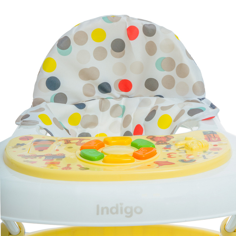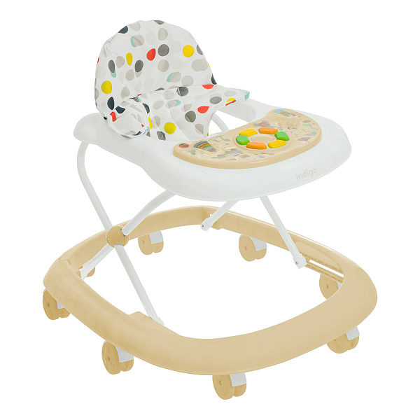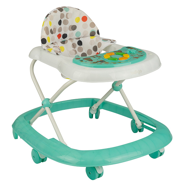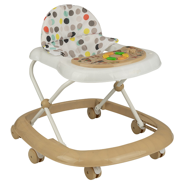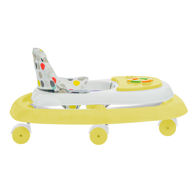 Ходунки для активных детей. Помогают ребенку развивать координацию движения и научиться держать равновесие. Модель оборудована музыкальной панелью с 10 веселыми мелодиями. Высота сиденья регулируется в трех положениях, что позволяет настраивать ходунки под рост ребенка с полугода до полутора лет. Приспособление легко складывается и не занимает много места при хранении. Ходунки оснащены шестью пластиковыми колесами для легкого управления. Музыкальная панель работает от двух пальчиковых батареек (в комплект не входят).