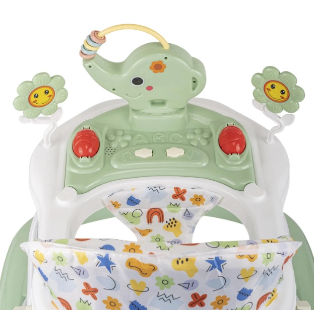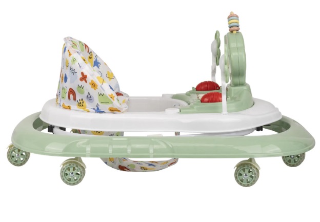 Ходунки оснащены шестью силиконовыми колесами, которые гарантируют плавное и бесшумное передвижение по любой поверхности в доме. Четыре уровня регулировки высоты позволяют настроить модель под рост ребенка, обеспечивая правильное положение ног. Прочный каркас выдерживает активное использование, а съемный чехол из водоотталкивающей ткани легко снимается и стирается, упрощая уход за изделием.