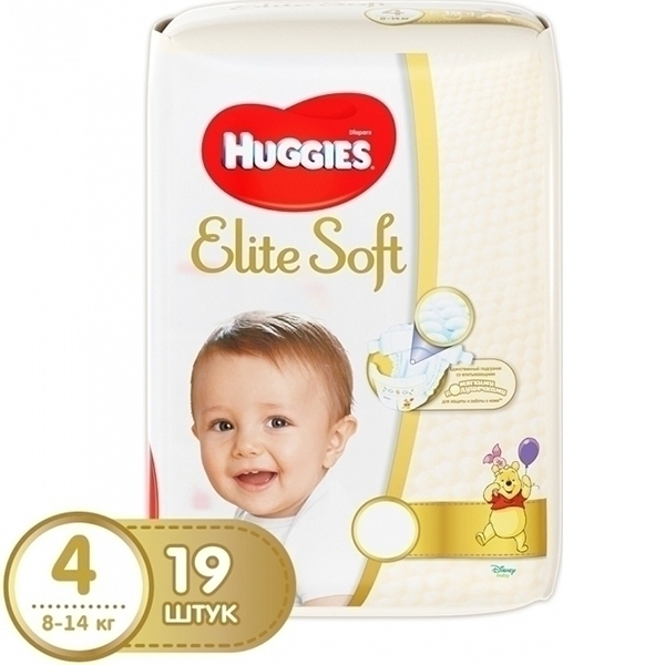 Детские подгузники Huggies Elite Soft 4, 8-14 кг, 19 штук