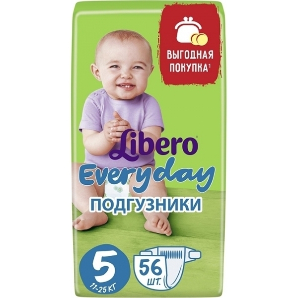 Детские подгузники Libero Everyday с ромашкой 5 Extra Large, 11-25 кг, 56 штук