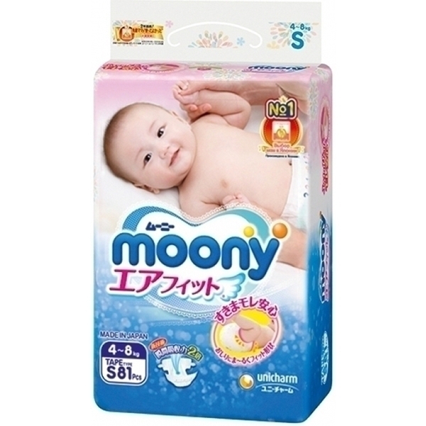 Детские подгузники Moony S, 4-8 кг, 81 штука