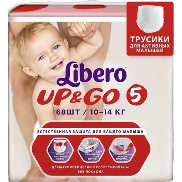 Во время путешествия сменить малышу подгузник непросто. Проблема решится легко с мягкими детскими трусиками Libero Up&Go 5 Maxi plus. Универсальные трусики созданы с учетом строения тела ребенка, не натирают кожу, легко снимаются и надеваются в любом положении. Широкая резинка на талии отлично пропускает воздух, не сдавливает животик, обеспечивает комфортную посадку трусиков. Для защиты от протекания в области ножек предусмотрены боковые манжетики.
